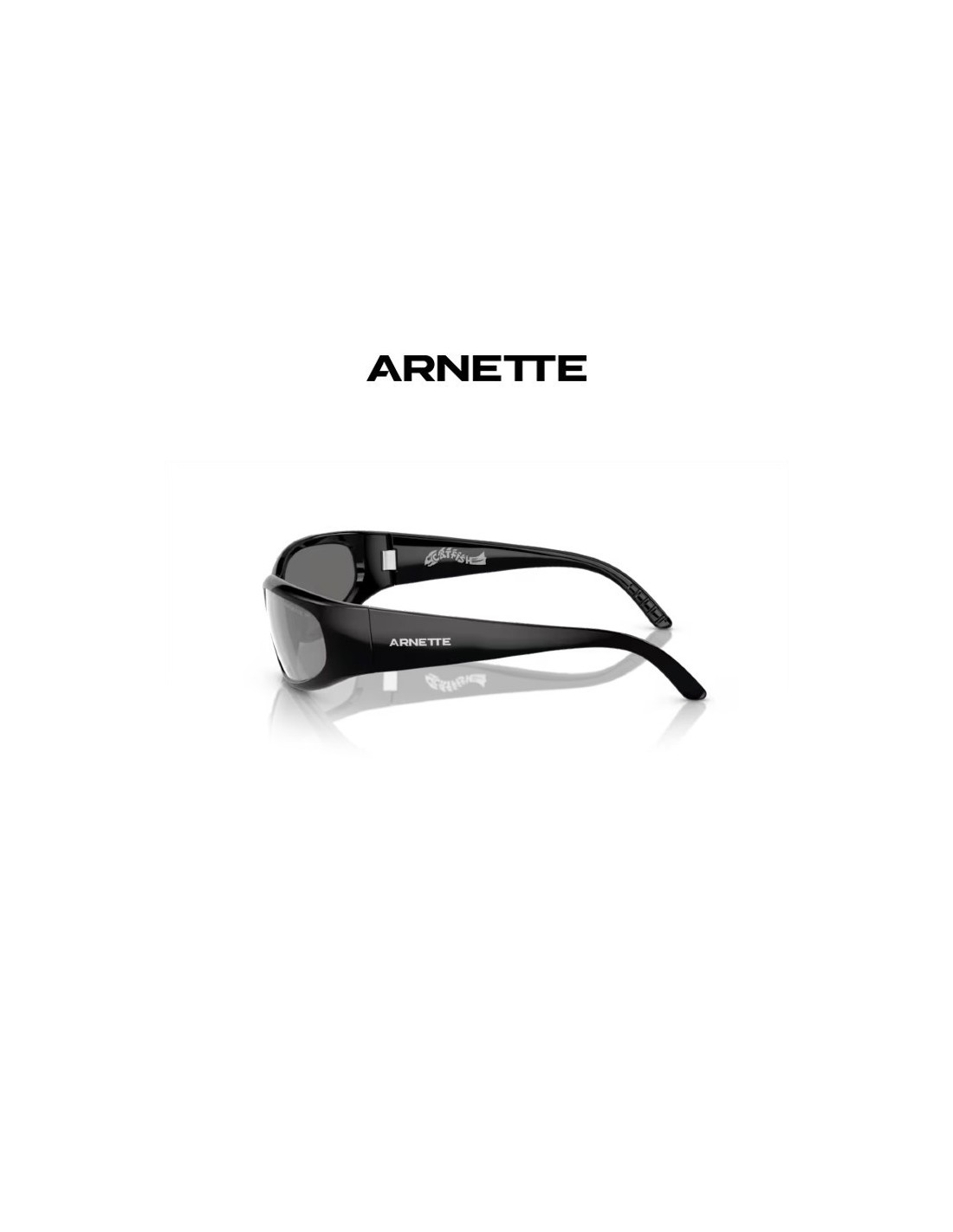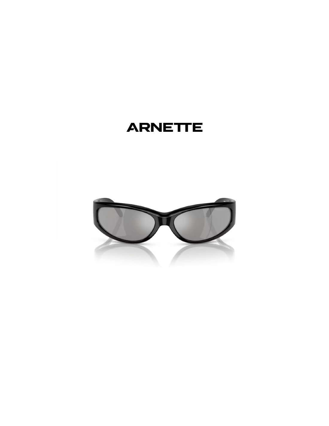 Este modelo de Arnette fabricado con inyectado, cuenta con un estilo de gafa deportiva con varillas anchas llamatimas con el logo de Arnette en grande. Tiene el color de montura negro reciclado y cristales color plateado polarizado de alta calidad.