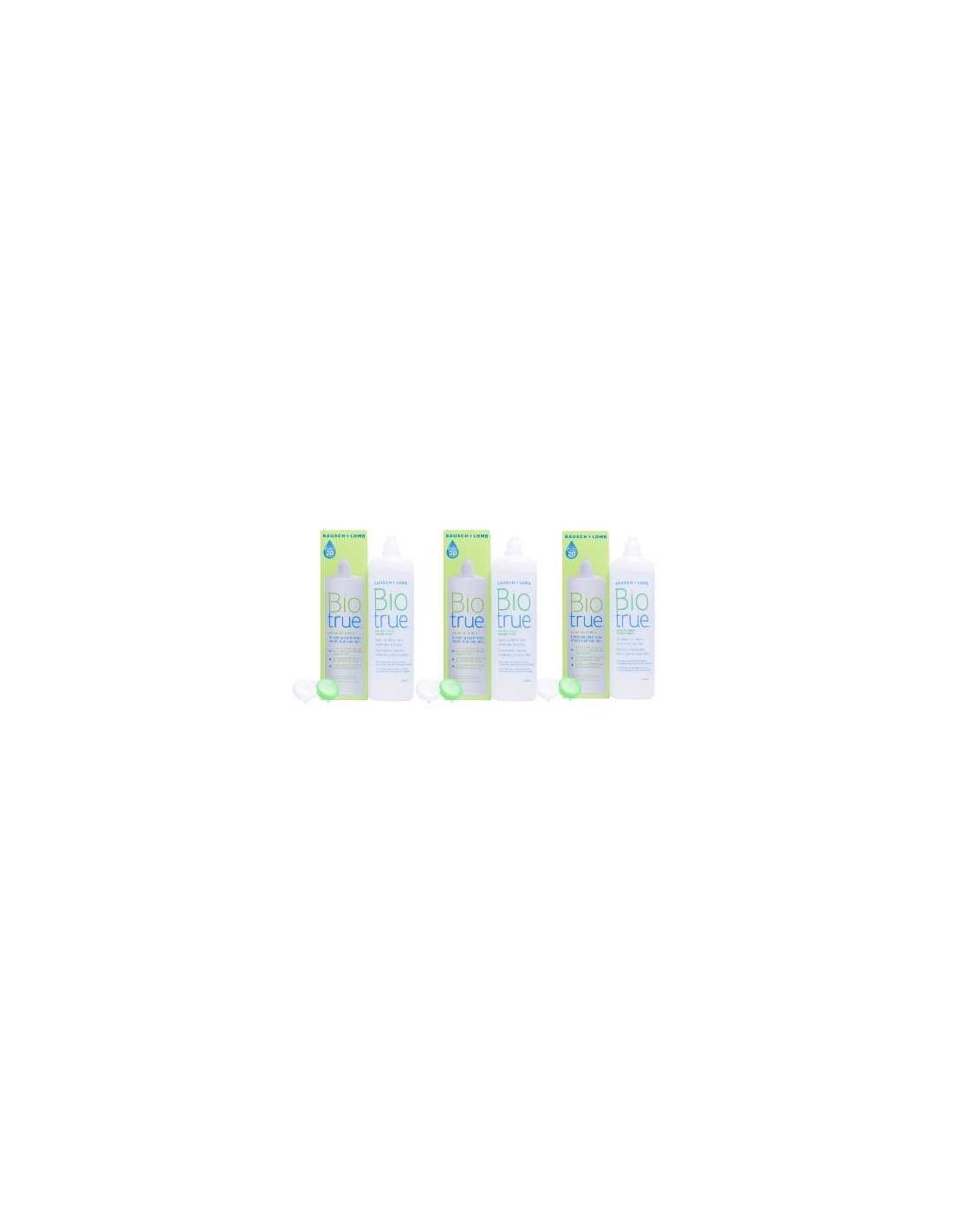 Biotrue 3x480 ml, es una solución única de Bausch & Lomb, disuelve las proteínas, limpia, suaviza y elimina las acumulaciones de partículas y residuos de las lentes de contacto blandas. La solución única Biotrue 3x480 ml ayuda a prevenir la formación de depósitos sobre la superficie de las lentes, que puedan irritar el ojo, también destruye los microorganismos perjudiciales que se puedan acumular en la lente. Mientras las lentes están sumergidas en la solución, la solución envuelve la lente con una capa de protección que contribuye a que se sienta cómodo con lentes durante todo el día.