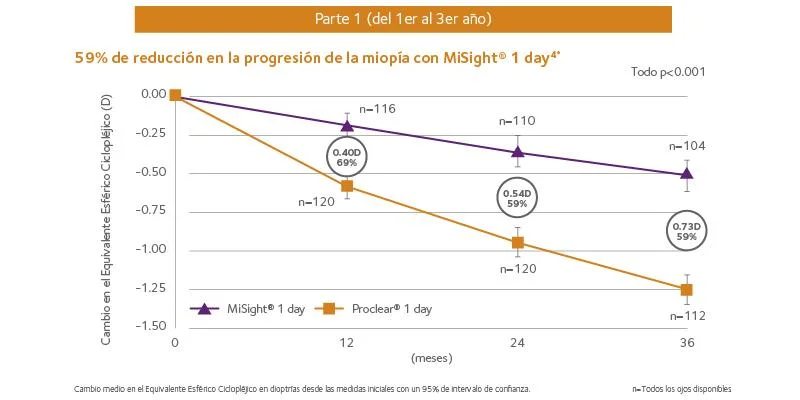 Las lentillas blandas diarias Misight 1 Day ayudan a corregir la miopía y realentizan su crecimiento en un 59% de media, gracias a su tecnología innovadora Activecontrol Technology.