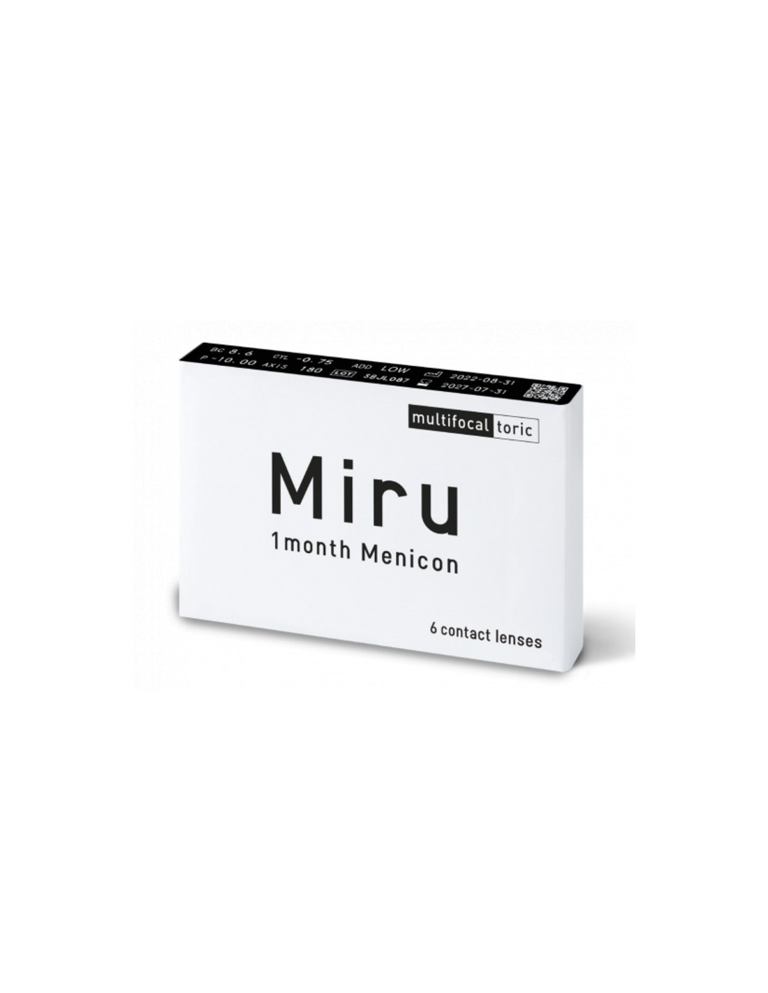 Miru 1 month Menicon Multifocal toric, caja con 6 lentillas, es una marca de lentillas mensuales tóricas progresivas fabricada por los laboratorios Menicon, para corregir la presbicia y el astigmatismo, con o sin miopía/hipermetropía. Miru 1 month, son unas lentes de contacto fabricadas en material hidrogel de silicona no iónico con bajo contenido en agua, pudiendo usarla todo el día, con un altísimo nivel de oxígeno que se traduce en comodidad. Las lentillas Miru cuentan con un innovador monómero hidrofílico asociado a un avanzado proceso de polimerización llamado Menisilk, un monómero hidrófilo de última generación, que proporciona a las lentes de contacto hidratación, alta transmisión de oxígeno a la córnea del usuario y total transparencia, aumentando el rendimiento, haciendo a tus ojos respirar y estar hidratados. Las lentes Miru llevan un novedoso tratamiento en superficie llamado Nanogloss, este tratamiento consigue una superficie de la lente extraordinariamente lisa, evitando la adherencia de depósitos en las lentillas y mejorando la humectación, lo que las hace mucho más cómodas de llevar.