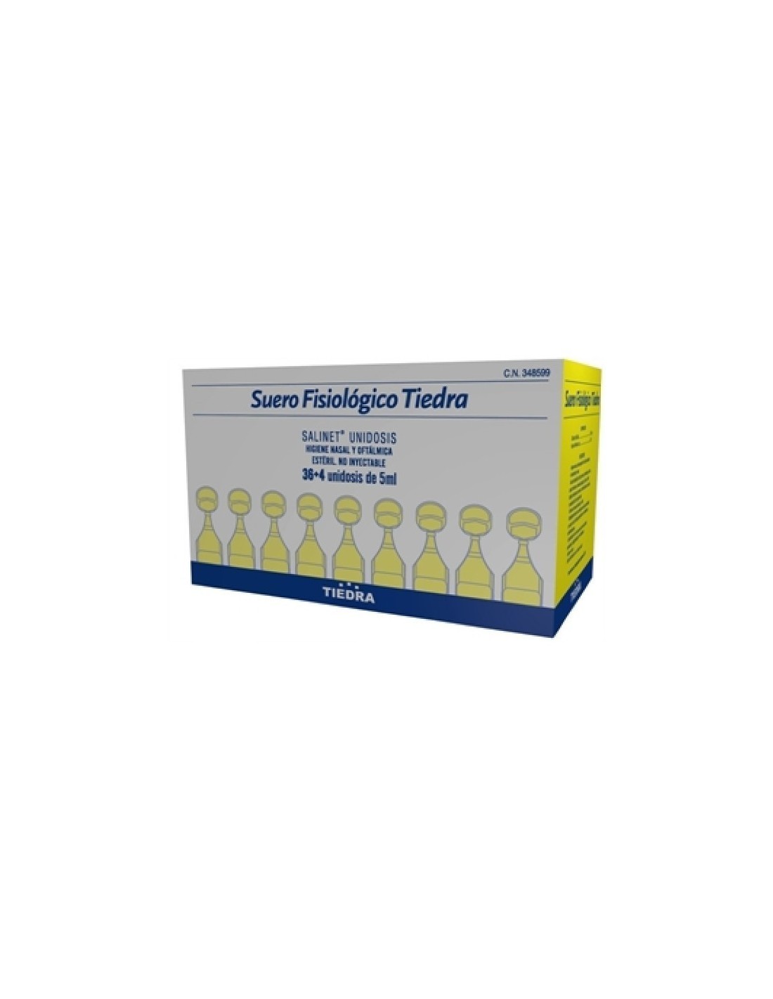 Suero Fisiológico Tiedra Salinet Unidosis 40x5 ml, esta especialmente indicado para la higiene nasal diaria, descongestión de las fosas nasales, alivio del catarro nasal, rinofaringitis, rinitis aguda, rinosinusitis, obstrucción nasal del bebe y del niño.