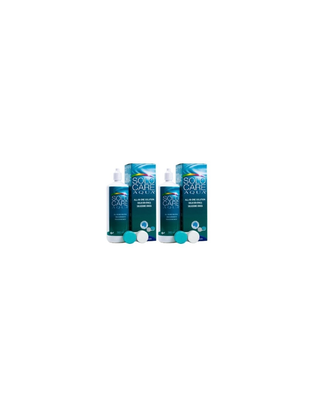 Solocare Aqua 2x360 ml, es una solución Multi-Acción. Indicada para desinfectar, limpiar, aclarar, humectar y conservar todo tipo de lentes de contacto blandas, incluso las de Hidrogel de Silicona.