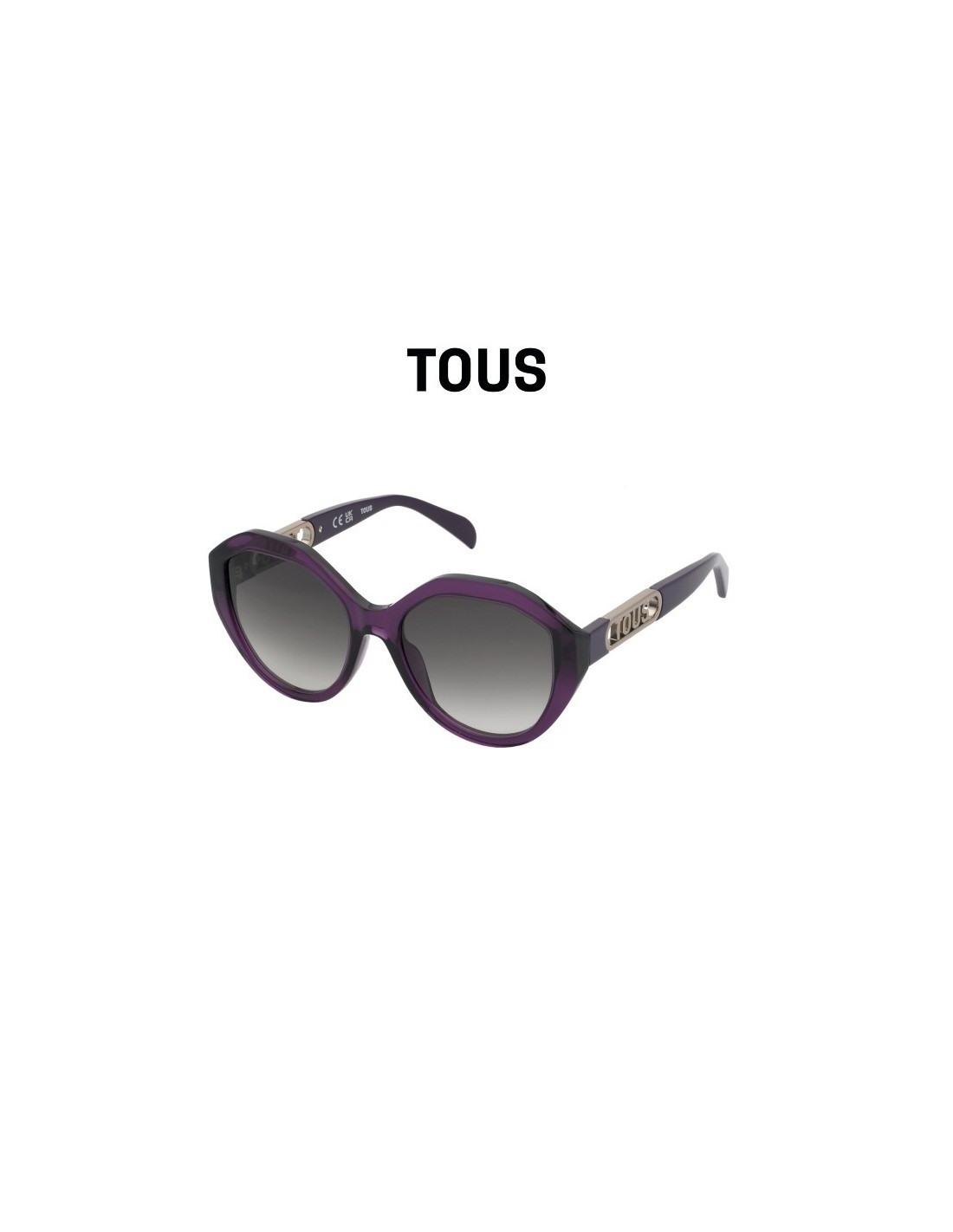 Las gafas de sol Tous STOB90 0916 destacan por su varilla con logo típico de la marca. Tous STOB90 0916, tiene el color de montura violeta brillante transparente y cristales degradados marrón/rosa. El modelo incluye estuche y gamuza. También disponibles los modelos: STOB90 0705 en negro brillante, STOB90 08LA en burdeos brillante, STOB90 0G61 en verde brillante.