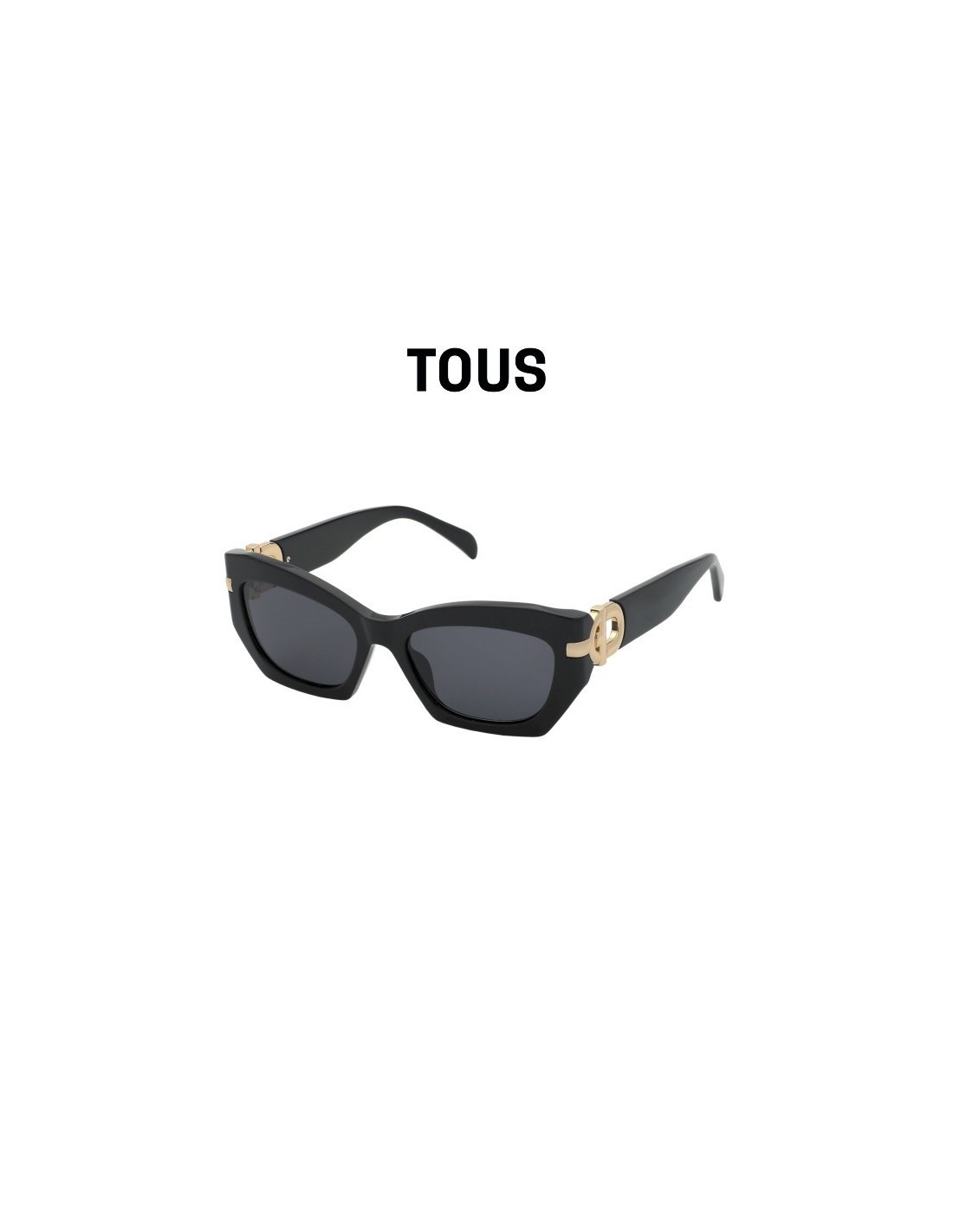 Las gafas de sol Tous STOC23 0700 destacan por su varilla ancha y logo grande de la marca. Tous STOC23 0700, tiene el color de montura negro brillante y cristales grises. El modelo incluye estuche y gamuza.