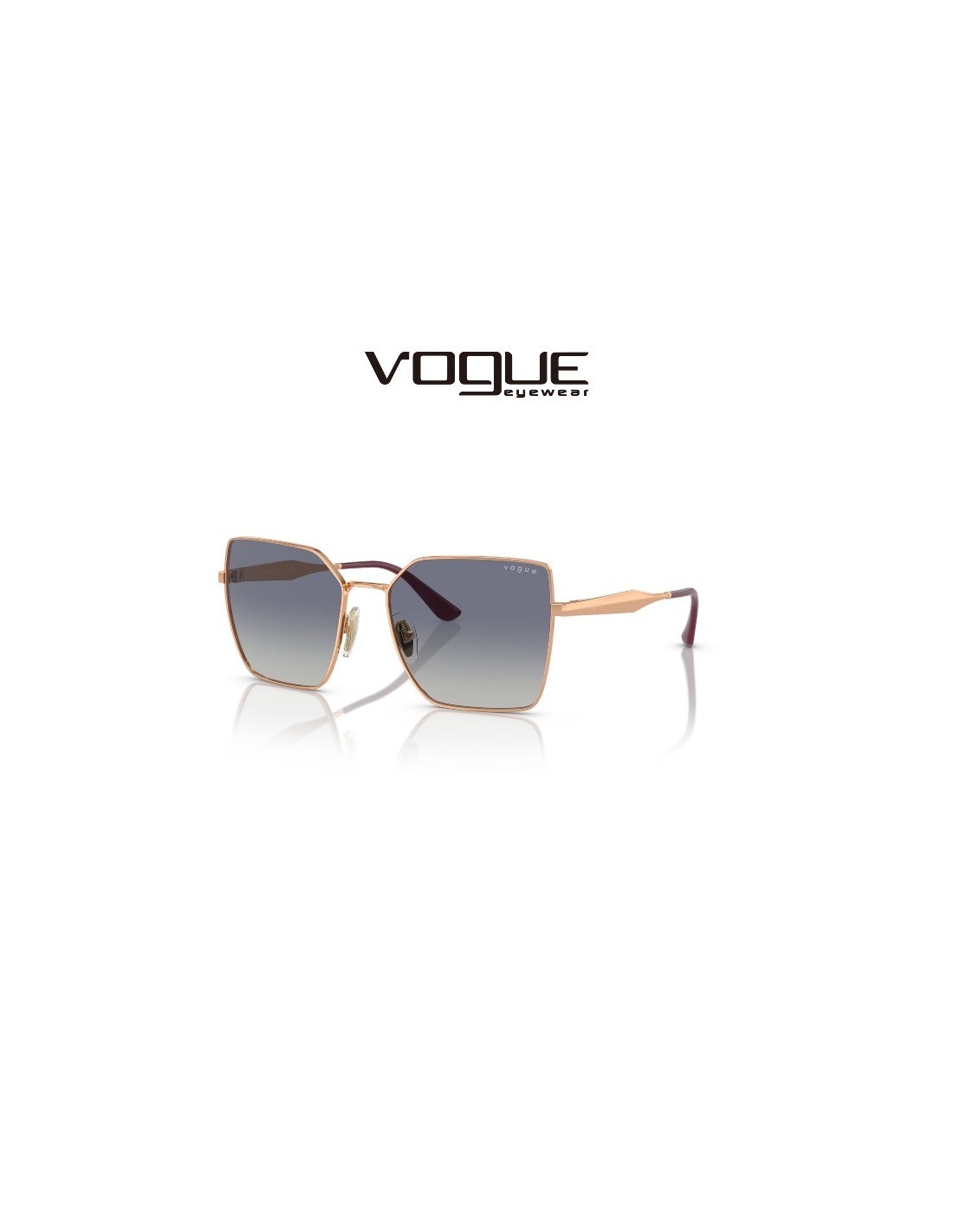 Las gafas de sol Vogue VO4284S 51524L destacan por su montura metálica increíblemente ligera. Tiene el color de montura oro rosa y cristales color azul.