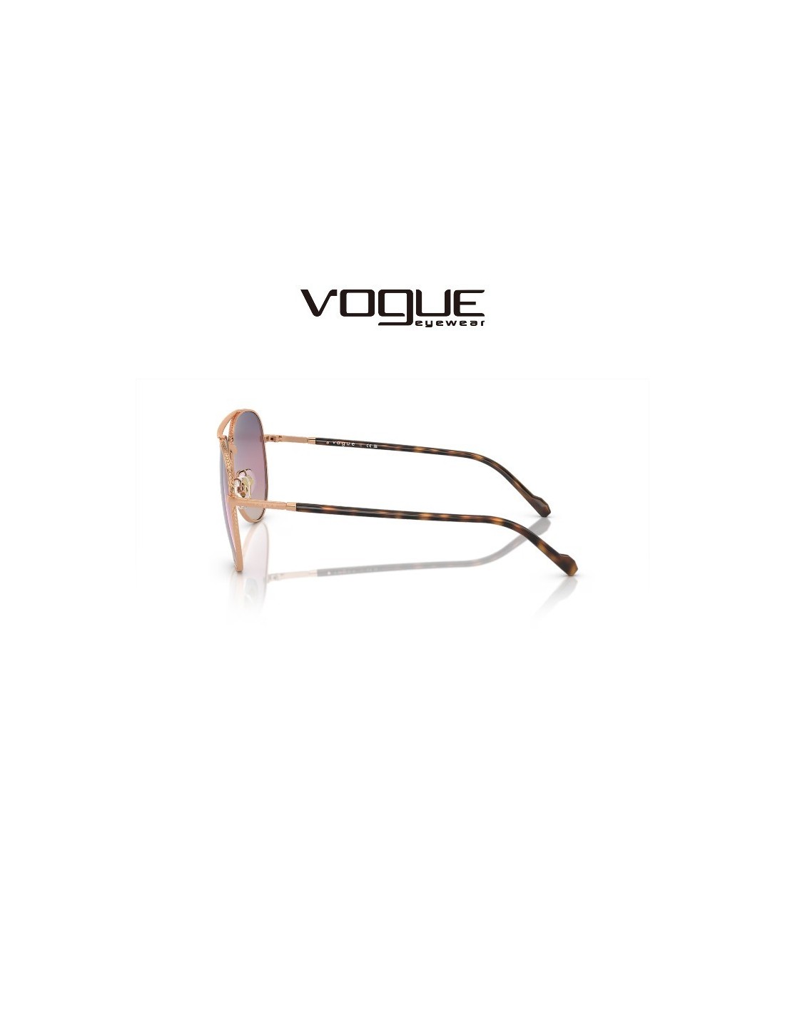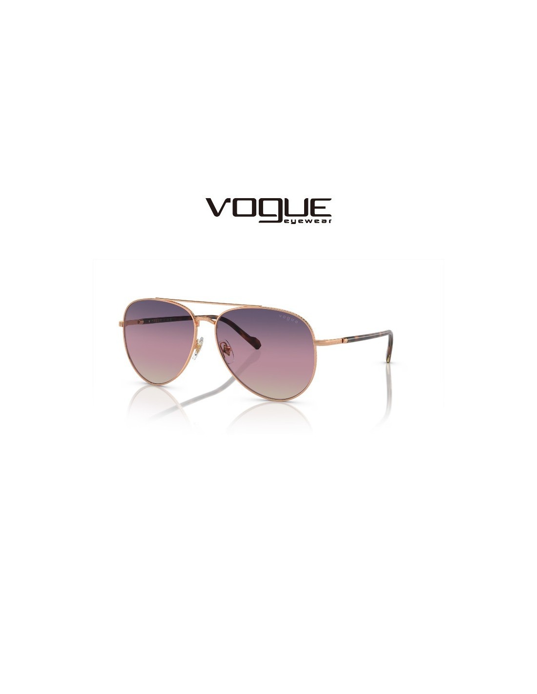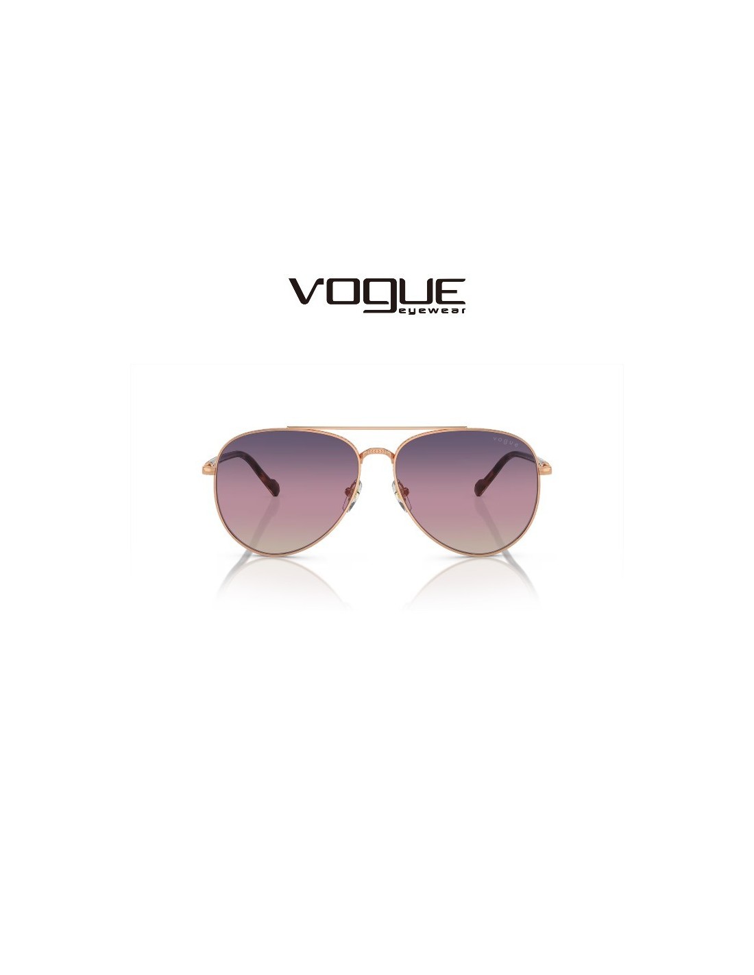 Las gafas de sol Vogue VO4290S 5152U6 destacan por su forma mítica de aviador y montura metálica increíblemente ligera. Tiene el color de montura oro rosa y cristales violeta.